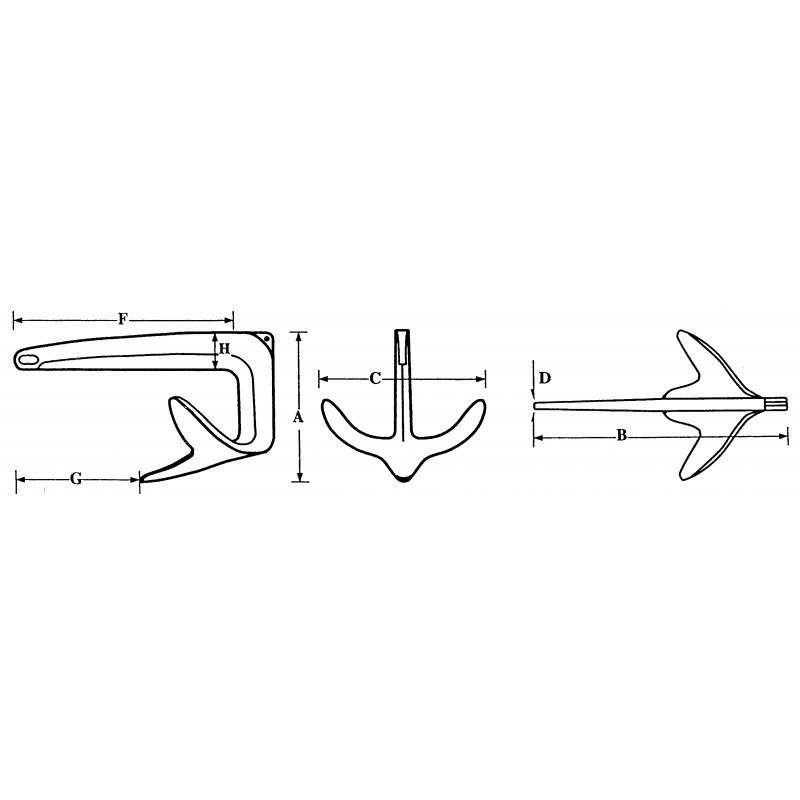 Ancora tipo bruce in acciaio zincato. Peso Kg.50 A: 507 MM B: 990 MM C: 650 MM D: 23 MM F: 860 MM G: 400 MM H: 120 MM I: 21 MM Materiale: ACCIAIO ZINCATO Peso: 50 KG
