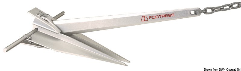 In alluminio con angolo del fuso variabile in relazione alla consistenza del fondale. Realizzate in robustissimo alluminio al magnesio anodizzato . Sono l’ideale come ancore di rispetto. Cinque differenti test effettuati, tra cui uno condotto dalla U.S. NAVY, dimostrano che la Fortress é l’ancora in assoluto più performante sul mercato.