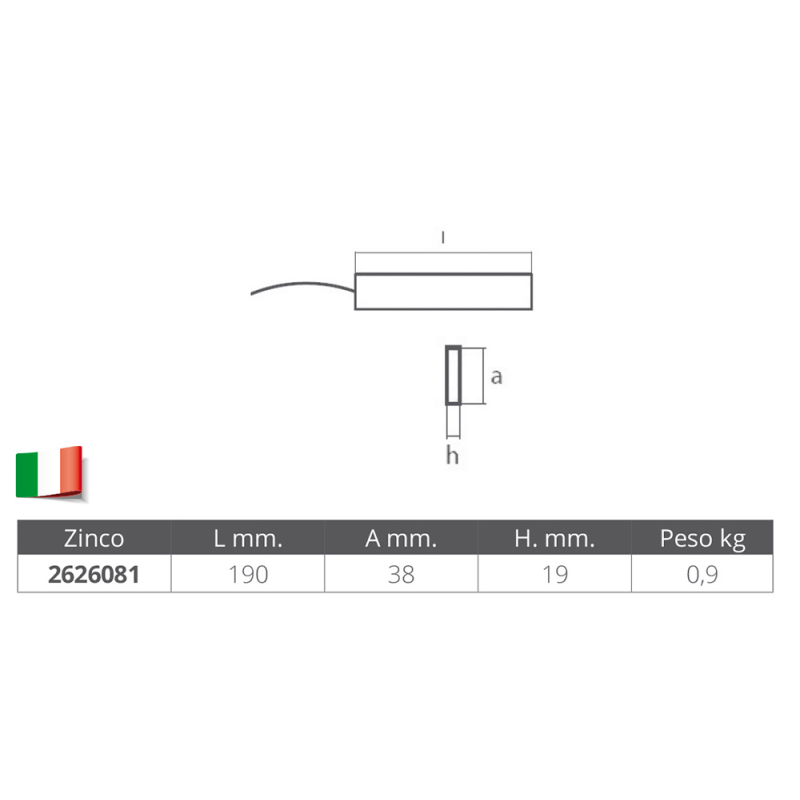 Anodo sospeso in zinco serie Tech 4 completo di mt. 6 cavo inox