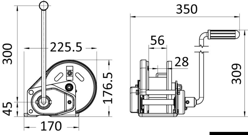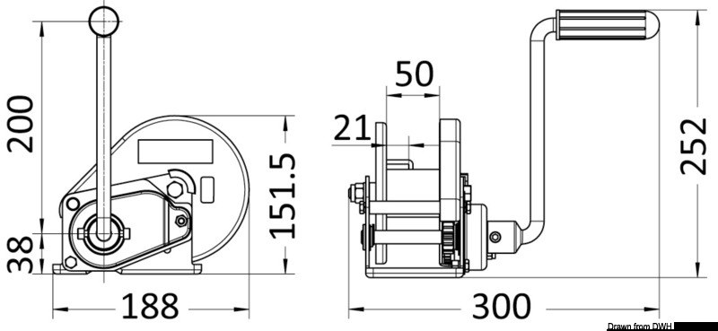 Il meccanismo autobloccante (agisce con un carico minimo di 25 kg) permette di usare il verricello in tutta sicurezza. Nessun ingranaggio esterno. Carcassa in acciaio zinco-cromato e verniciato con polveri epossidiche.