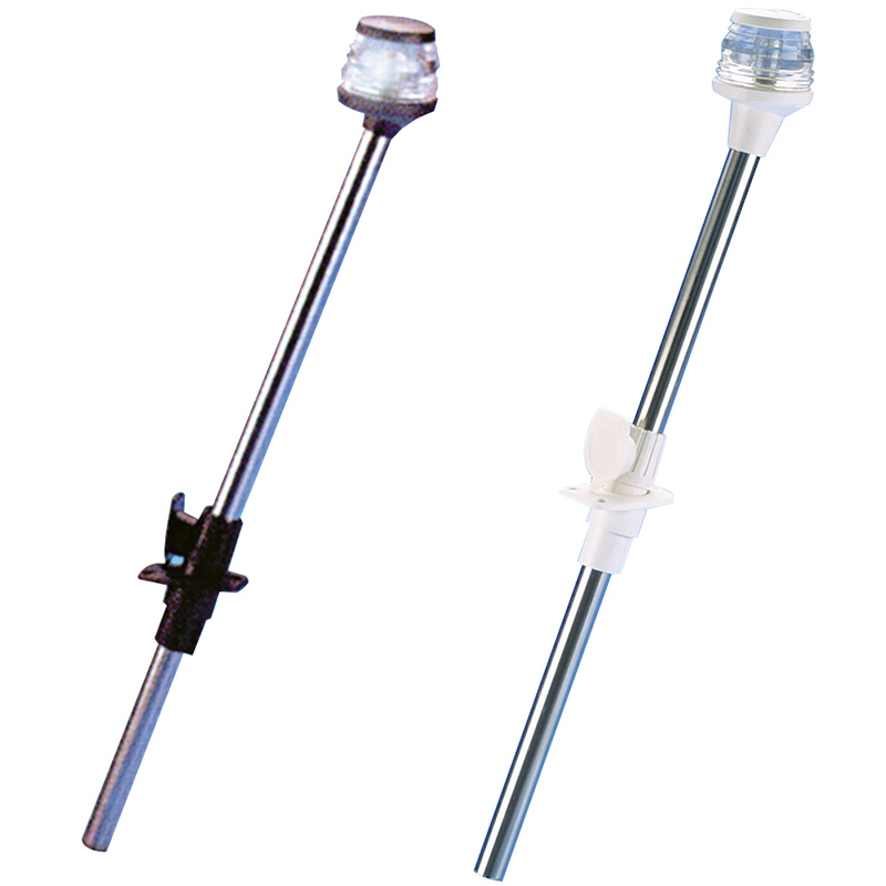 Asta in acciaio inox Ø mm. 19, retrattile a scomparsa con fanale a 360°, base mm. 65x44, altezza mm. 600. Omologati R.I.Na. e M.M.M per imbarcazioni fino a 20 mt.