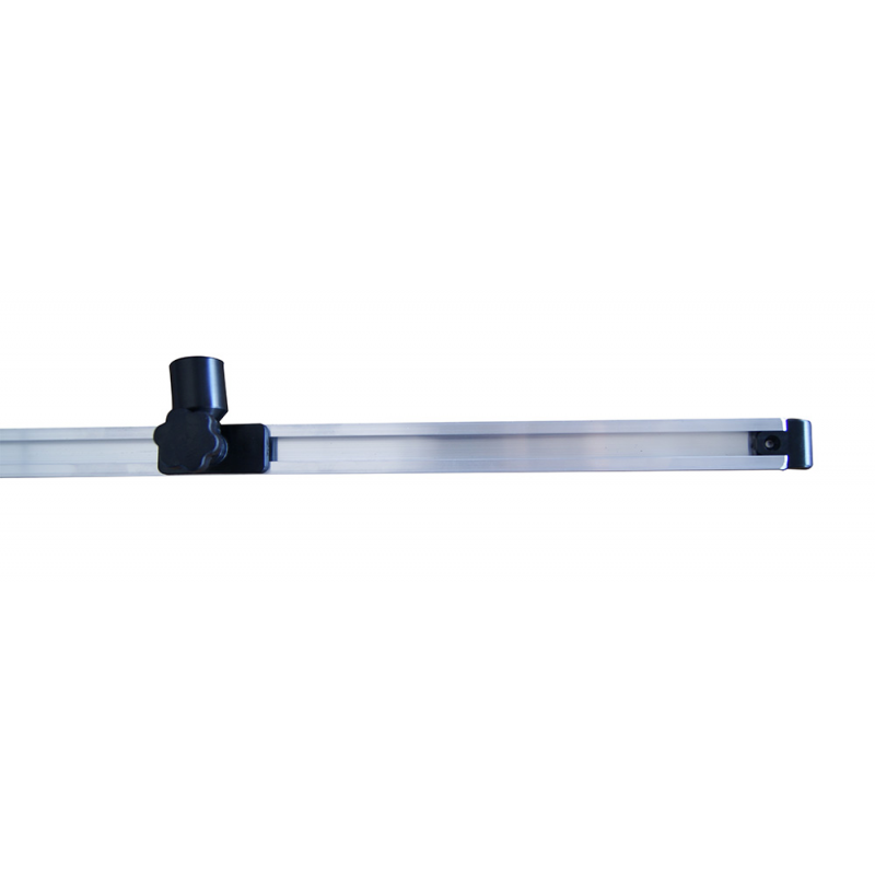 Attacco scorrevole per capottine e tendalini universali, rotaia in lega leggera da cm. 105x2,5 largh. completa di cursore, supporto, fermo e terminali in plastica, montaggio a parete