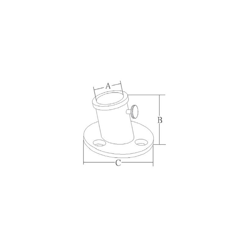 Supporto da piano in acciaio inox AISI 316 per aste portabandiera. Fissaggio asta con fermo a vite.