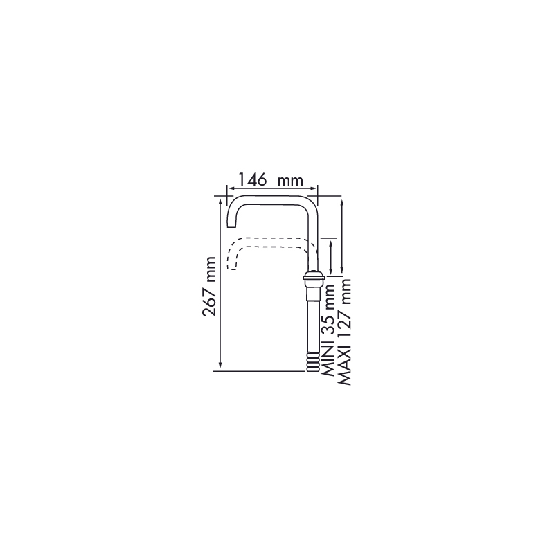 Beccuccio telescopico realizzato in alluminio anodizzato e plastica, girevole a 360° e telescopico. Otturatore regolabile in nylon incluso. Per tubo Ø mm 10 -15 :
