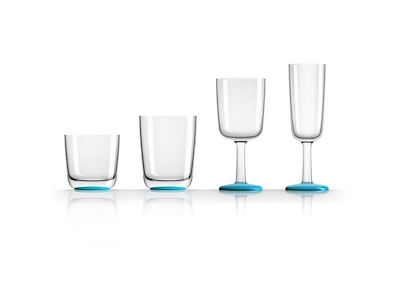 Bicchieri in Tritan disegnata da Marc Newson.Infrangibili, lavabili in lavastoviglie e senza BPA. Impilabili per una comoda conservazione a bordo.Base antiscivolo con anello in gomma incorporato per un'ottima stabilità.