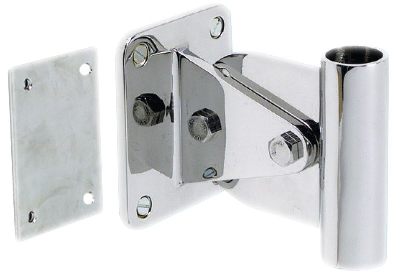 Per supportare a parete le passerelle. Realizzata in acciaio inox AISI 316 lucidato a specchio . Base di fissaggio mm: 100x80 Accetta perni passerella: da 25 mm Contropiastra: INCLUDED
