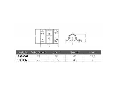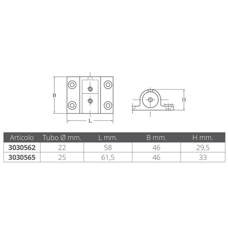 Boccola lateralein acciaio inox AISI 316 per candelieri passerelle.Con foro per drenaggio acqua