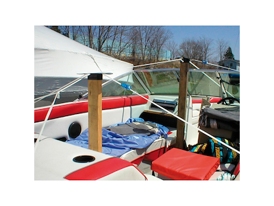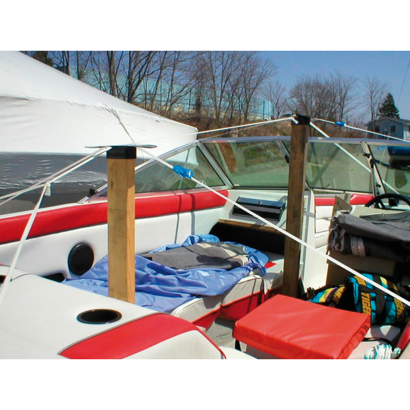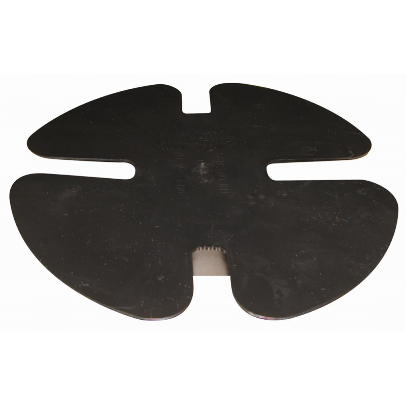 Borchia in PVC nero con inserto dim. mm. 50 x 100. Permette di proteggere il telo quando si inserisce un palo di supporto, onde evitare il ristagno dell’acqua. Le 4 aperture permettono il passaggio della reggetta per il fissaggio sull’imbarcazione. Può essere usata anche come base per il palo di supporto.