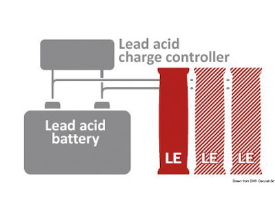 Il sistema di batterie intelligenti LE300 è un'estensione al litio per qualsiasi batteria al piombo-acido da 12 V, sia AGM, GEL o cella umida.