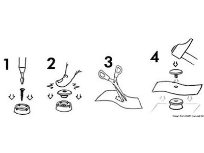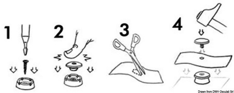 Prodotti in nylon anti UV e anti corrosione. Sono facili da installare ed hanno una tenuta garantita e resistente. Foro richiesto nel tessuto 5 mm. Ø testa mm 18