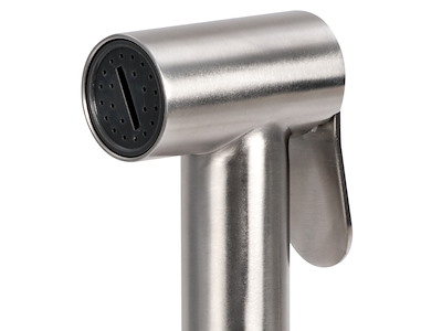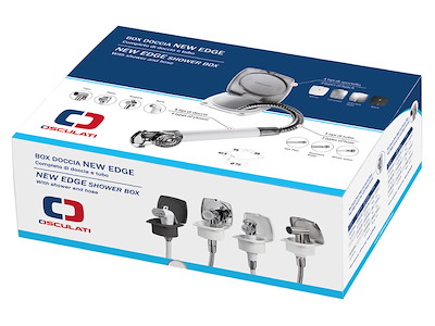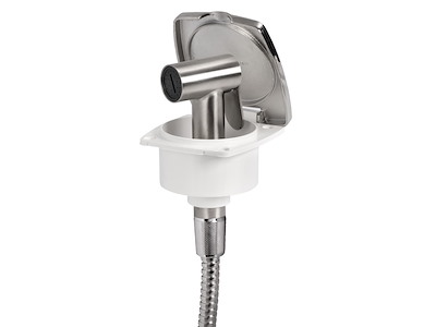 Doccia in acciaio inox, vano di alloggiamento bianco in ASA UV resistente.
