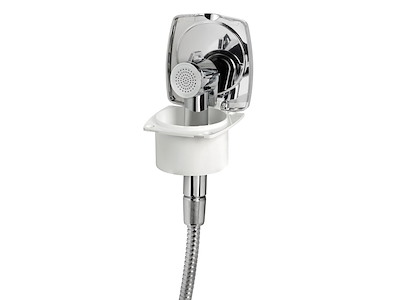 Doccia in ABS cromato, vano di allaggiamento bianco in ASA UV resistente.
