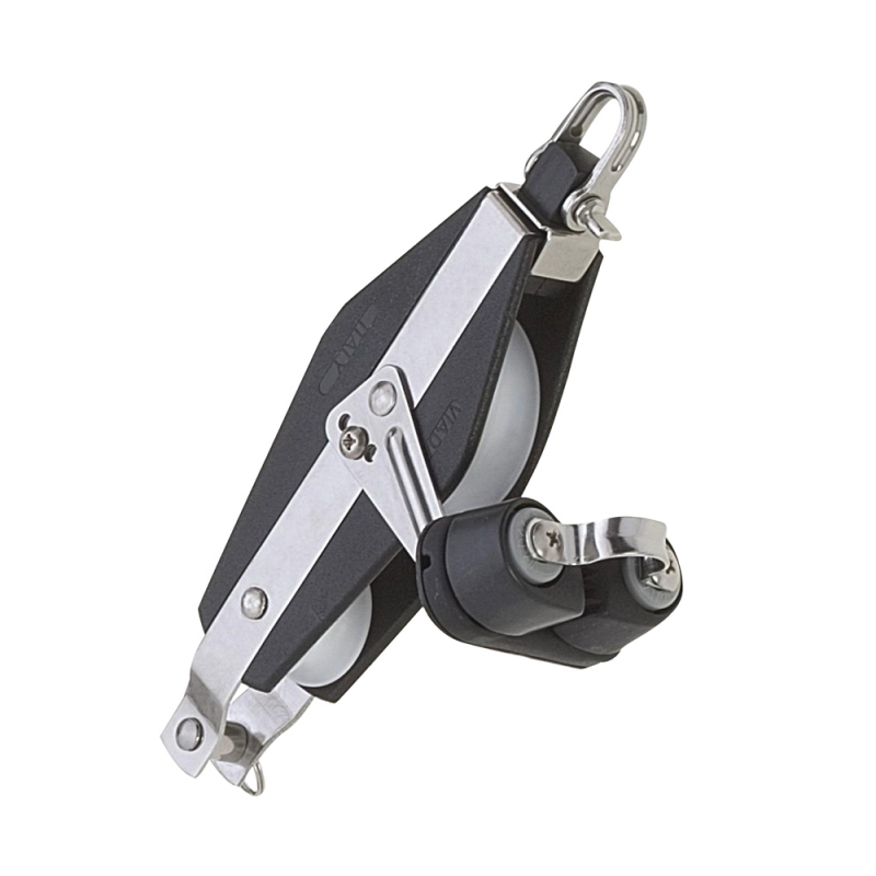 Bozzello violino a due pulegge con sfere e arricavo con strozzascotte, carico di lavoro kg.230 carico di rottura kg.950