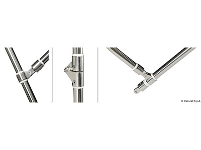 Tubo acciaio inox lucidato AISI 316 Ø 25 mm. Raccorderia acciaio inox AISI 316. Archi abbattibili. Tessuto poliestere/poliuretano 600D impermeabile e resistente UV. Smontabile e pieghevole con custodia.