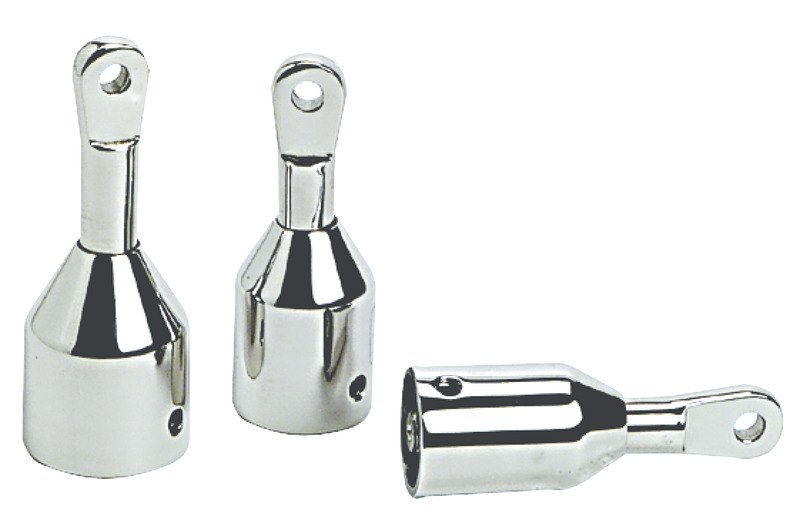 Per tubi capottine con occhio regolabile e con escursione di 15 mm . Permettono di tesare perfettamente il tendalino. Fabbricati in acciaio ; inox AISI 316 lucidato a specchio .