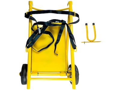 Il carello porta bombola è facile da montare, leggero, pieghevole e maneggevole. Viene fornito con cinghie che servono ad assicurare la bombola durante il trasporto ed un supporto apposito per la termopistola (codice 46.177.00).