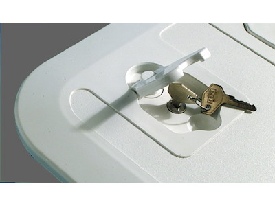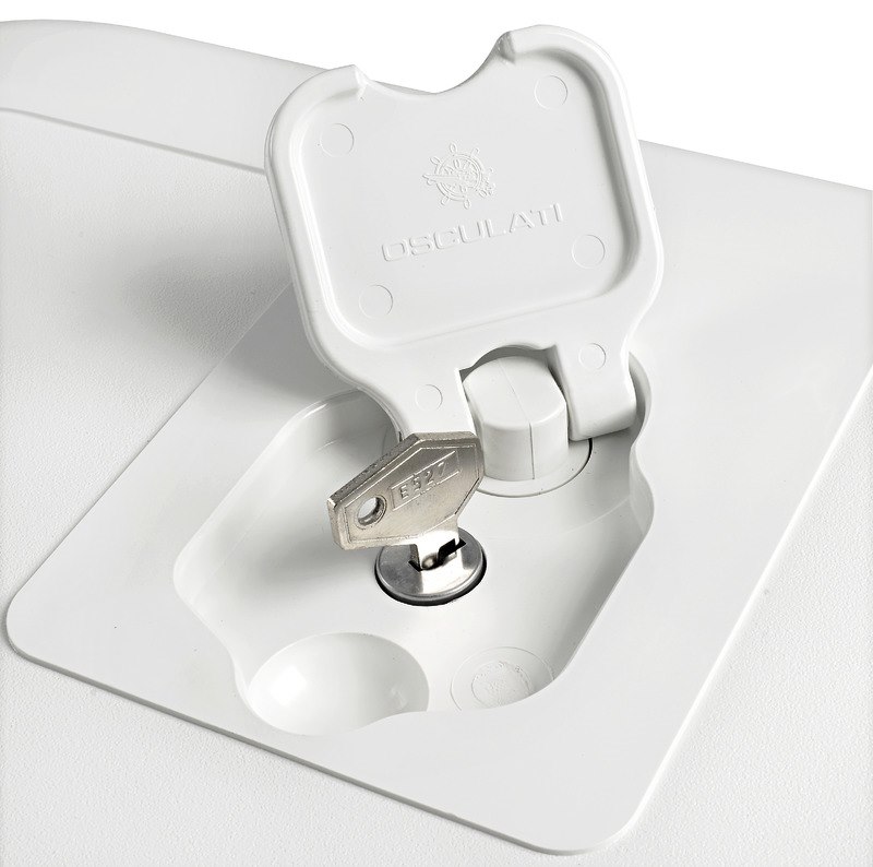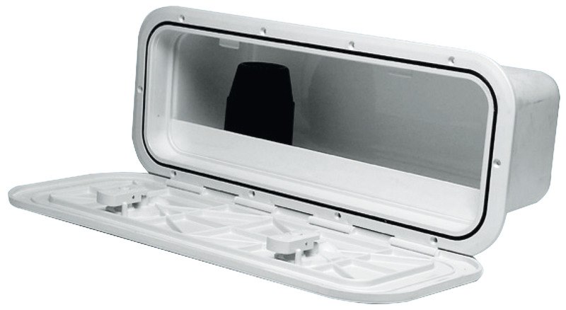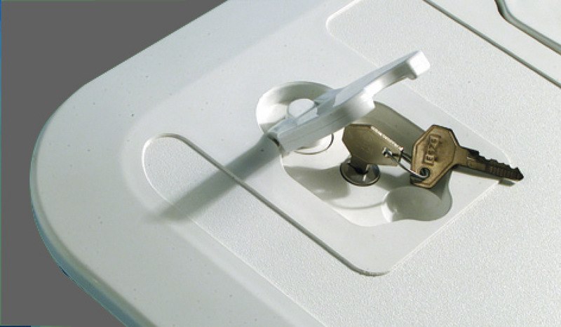 In ABS bianco. Coperchio completamente carenato, nasconde totalmente il telaio. La paratia frontale é ad incastro, pertanto la tasca può essere montata con apertura verso l’alto oppure verso il basso.