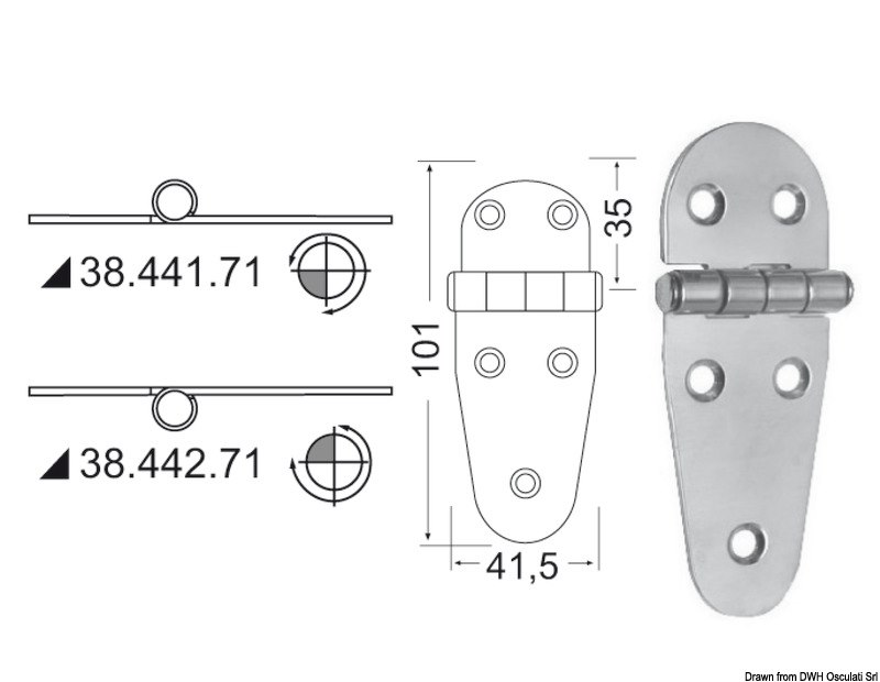 Cerniera inox 101x41,5 mm