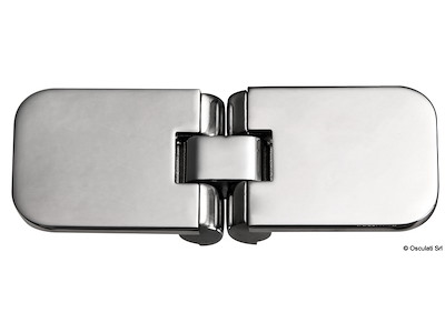Realizzata in acciaio inox AISI 316 lucidato a specchio. Applicabile per tavoli o portelli con apertura a ribalta. Dotata di cover copriviti applicabile dopo il montaggio per un design pulito e lineare.