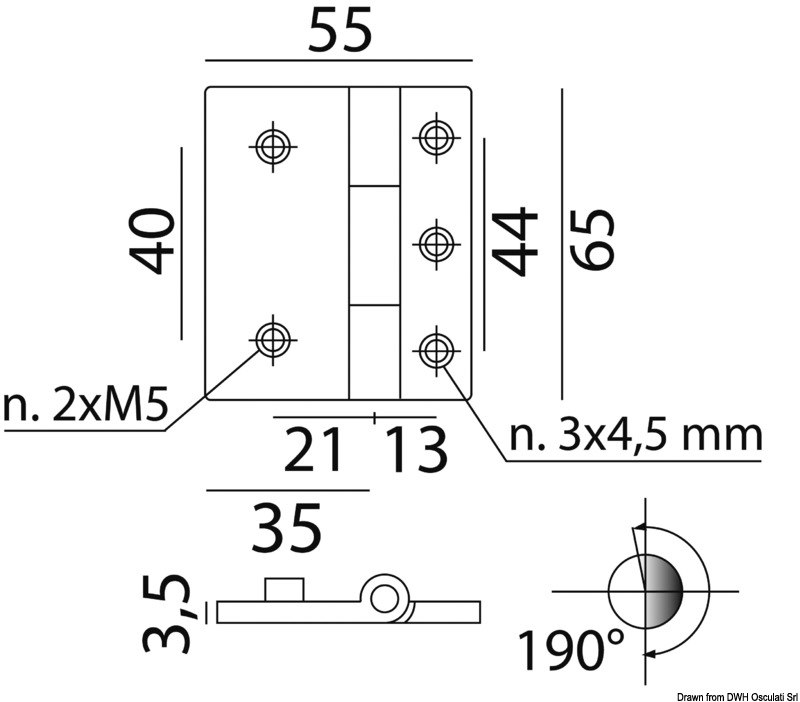 In ottone cromato senza viti con fissaggio da sotto tramite prigionieri.