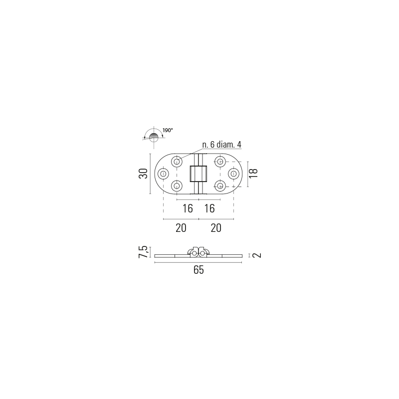 Cerniera in ottone con arresto, per tavoli mm. 80x30