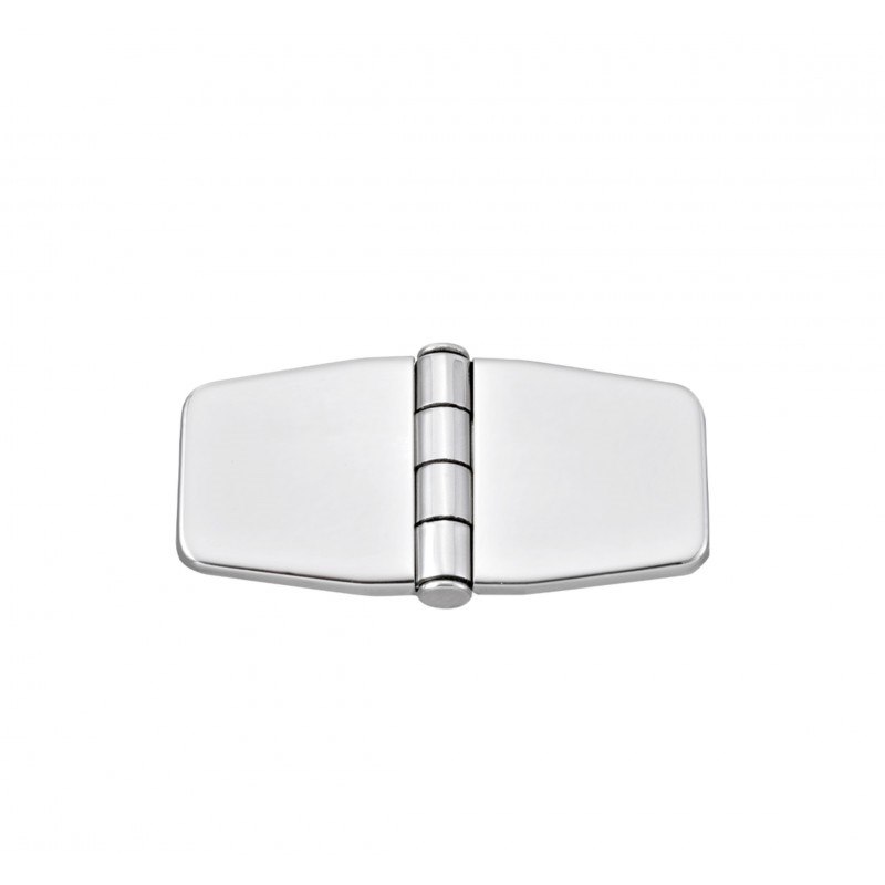 Cerniere con copertura in acciaio inox AISI 316 spessore mm.2. Tramite il nastro biadesivo 3m vhbpremontato sulla copertura stessa, permette di nascondere le viti della cerniera dopo il montaggio, congrande effetto estetico. dim. mm. 76X37, perno semincassato