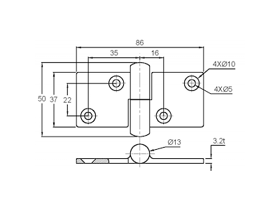 Cerniera lucidata a specchio in acciaio inox AISI 316. Sfilabile per porte e cofani motore. Spessoremm. 3, mm. 86 x 50 sfilabile destra