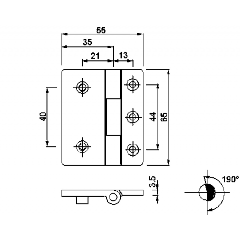 Cerniere a filo in acciaio inox lucidate a specchio. Dim. mm. 55 X 65