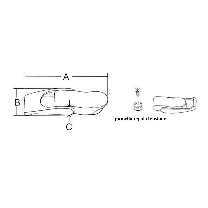 Chiusura in acciaio inox AISI 316. La tensione di arresto può essere regolata ruotando il pomello di fissaggio