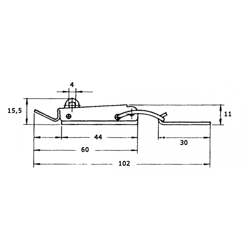 Chiusura in acciaio inox con foro per lucchetto, dim. mm. 102x23.