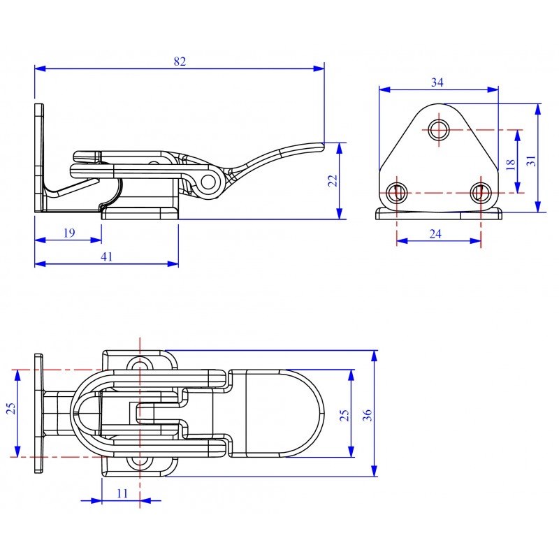 Chiusura a squadra in ottone cromato. Dimensioni: 82X36X22 MM