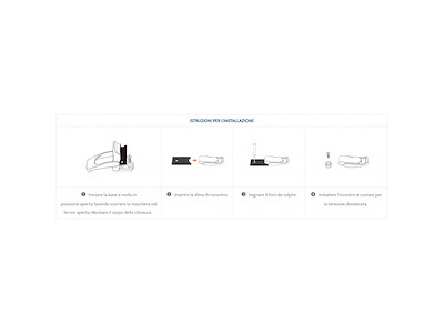 Chiusura realizzata in acciaio inox lucido con l’ aggiunta di un trattamento PVD nero. Il trattamento rafforza con uno strato nero l’acciaio e ne rende la superficie durissima e resistente alla corrosione. A: 82 MM B: 25 MM C: 15 MM Modello: SENZA CHIAVE
