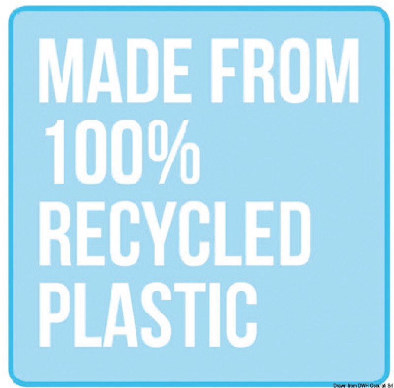 Cima pre-impiombata con asola di 50 cm e finitura con filo. Prodotto 100% con poliestere riciclato da bottiglie di plastica. Ogni metro di cima è prodotto recuperando il materiale di 7,5 bottiglie di plastica.