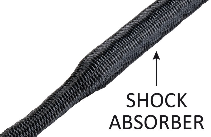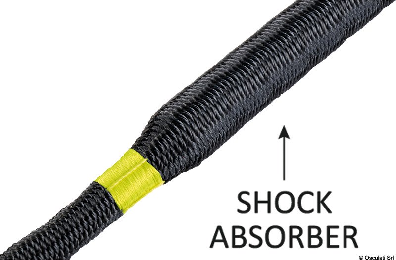Doppia treccia realizzata in 100% poliestere alta tenacità che include al suo interno un ammortizzatore in materiale elastico.
