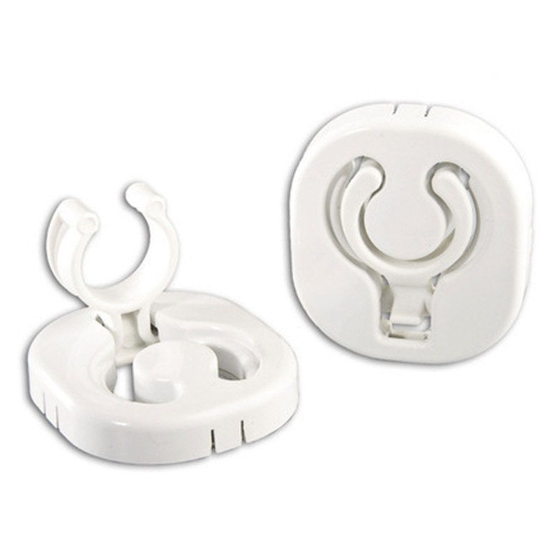 Clip in plastica bianca a scomparsa. Ferma remi, mezzimarinai e manici in genere. Venduto a coppia. 3 fori di fissaggio.