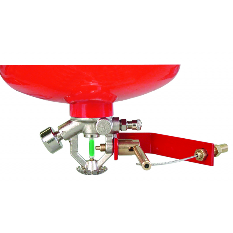 Comando Manuale a distanza per azionamento estintore composto da : attuatore meccanico, cavetto di acciaio con guaina flessibile da mt.5 e nicchia in ottone verniciata di rosso da plancia.