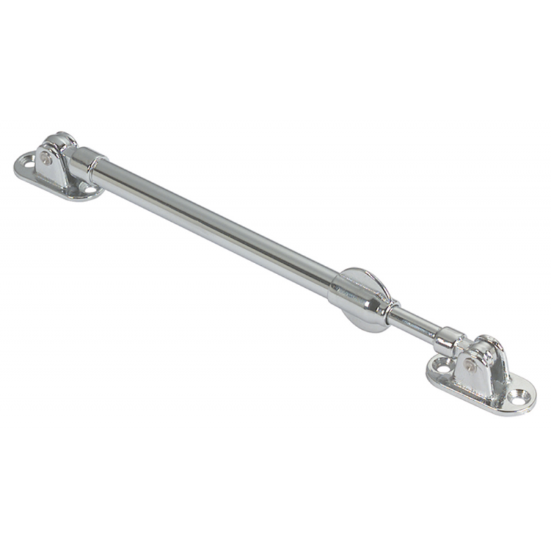Compasso telescopico a chiusura rapidain ottone cromato per finestrini e portelli.Lungh. da mm. 230 (chiuso) a mm. 380 (aperto)