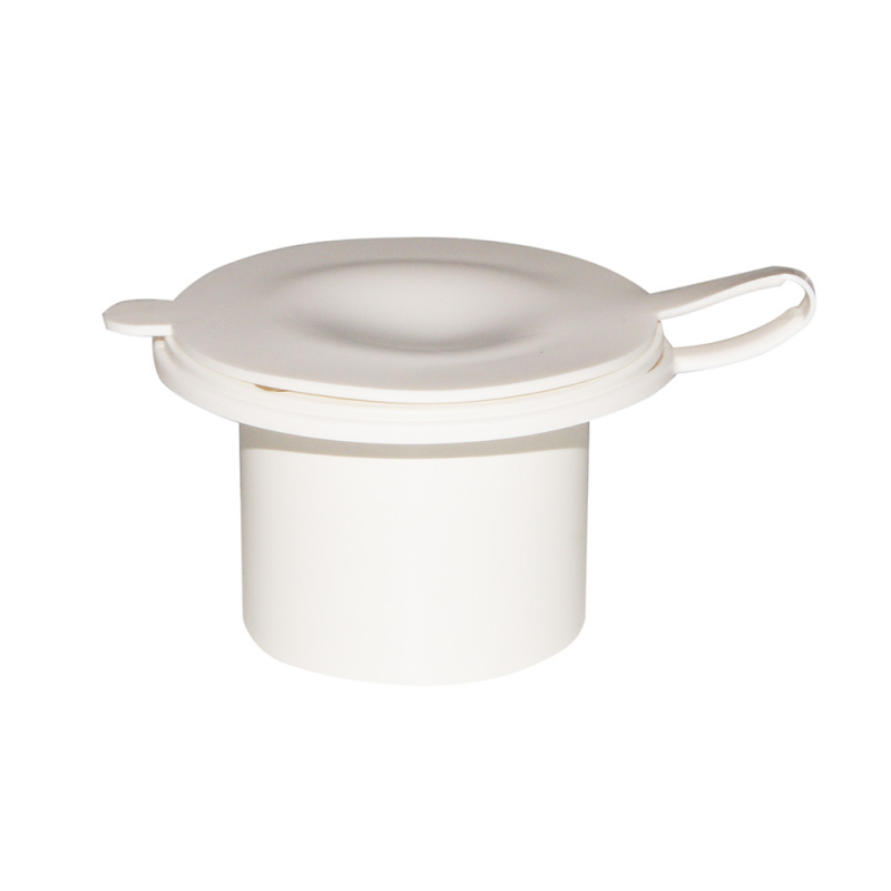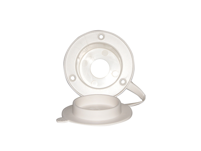 Contenitore porta doccia in PVC bianco a scomparsa, con coperchio in gomma ad incastro Ø taglio mm. 60, Ø esterno mm. 83, altezza mm. 50. Per doccette articolo 2424218/19/232/234