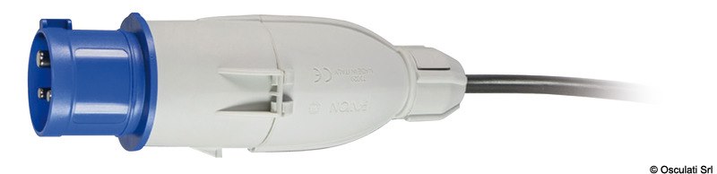 Trasforma le prese da banchina (femmine 16A) a prese civili (Schuko 3 poli piccole o 3 poli grandi). Resistente alla pioggia con un grado di protezione IP44 grazie al sistema di chiusura del cavo posteriore brevettato.