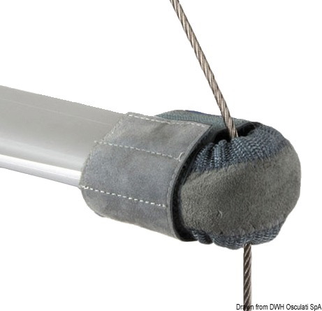 Pelle trattata antiacqua, sale, UV, con bordatura elastica ed anima in neoprene. Fissaggio tramite dispositivo a strappo. Adatti ad ogni tipo di crocetta. Montaggio rapidissimo. Vendute a coppia.