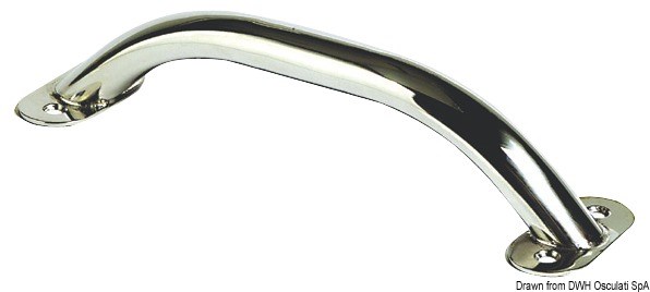 In acciaio inox lucidato a specchio, sezione19x25 mm, fissaggio esterno con viti.