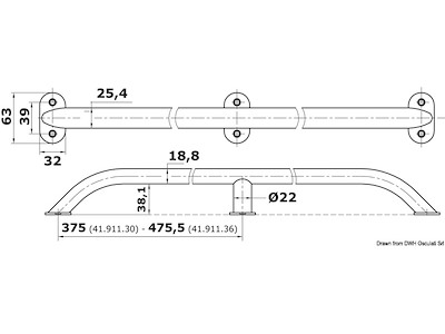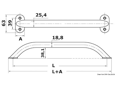 In acciaio inox lucidato a specchio , sezione19x25 mm, fissaggio esterno con viti .