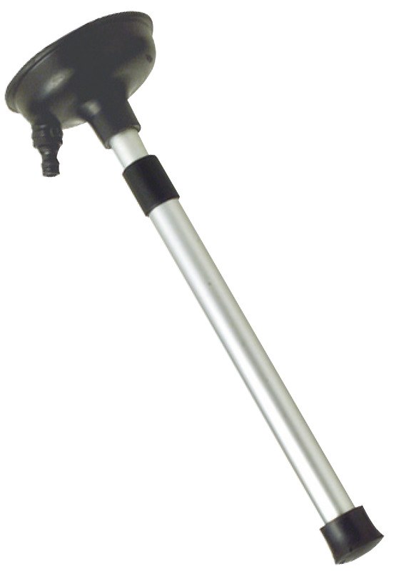 Si appoggia la ventosa in gomma sopra la presa a mare, facendo leva a terra tramite il tubo telescopico in alluminio. Il tubo dell’acqua si innesta a scatto nel raccordo universale tipo giardinaggio.