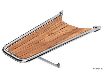 In acciaio inox AISI 316 lucidato a specchio con grigliato in vero teak. Puntone di sostegno regolabile .