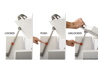 Questo dispositivo di sicurezza è consigliabile per evitare che in caso di rollio o beccheggio un portello si possa inavvertitamente chiudere.