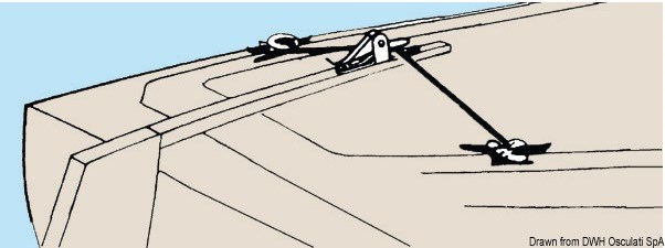 Realizzato in alluminio anodizzato e acciaio inox. Si applica sotto o sopra la barra del timone e permette di strozzare una cimetta piazzata di traverso al pozzetto. E' un economico surrogato del pilota automatico.