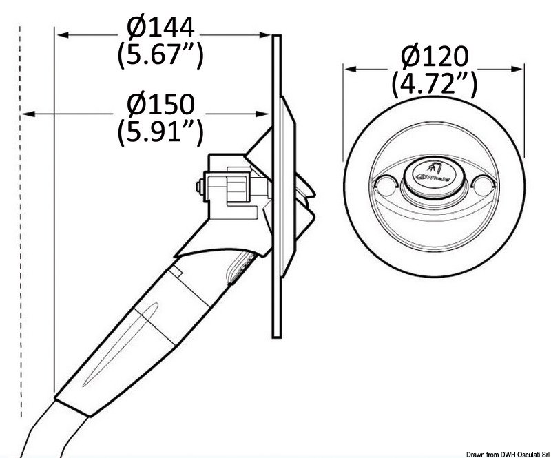 - flangia installabile dall’esterno e mediante un solo foro circolare.