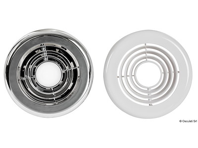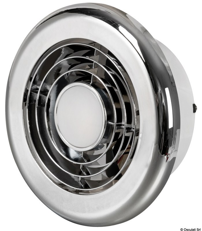 Aspiratore compatto con luce LED incorporata, ideale per bagni e cucine.