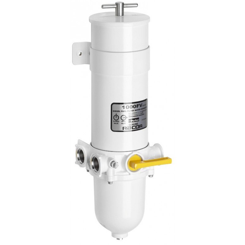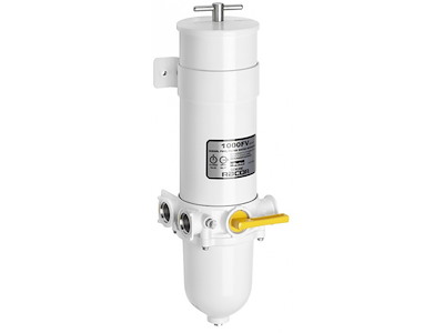 Filtro separatore acqua/gasolio Racor serie TURBINE, separa le impurità in sospensione presenti nel gasolio come un comune filtro gasolio, ma a questa funzione aggiunge quella di eliminare l'acqua che molto spesso è presente nel gasolio, migliorando così il consumo di carburante, riducendo i gas di scarico inquinanti e preservando la durata della funzionalità del filtro stesso quello della pompa e degli iniettori. Approvati US COAST GUARD. Completo di raccordi M/F.