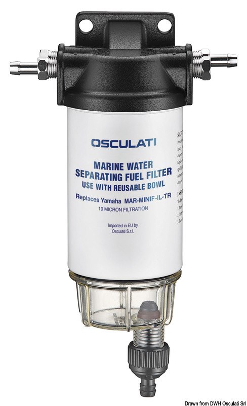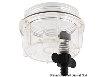 Testa in alluminio, vaschetta trasparente, spurgo con sistema rapido. Consigliato per motori fino a 200 HP - Equivalente Yamaha 2W-114-00-00. Completo portagomma 8 mm.